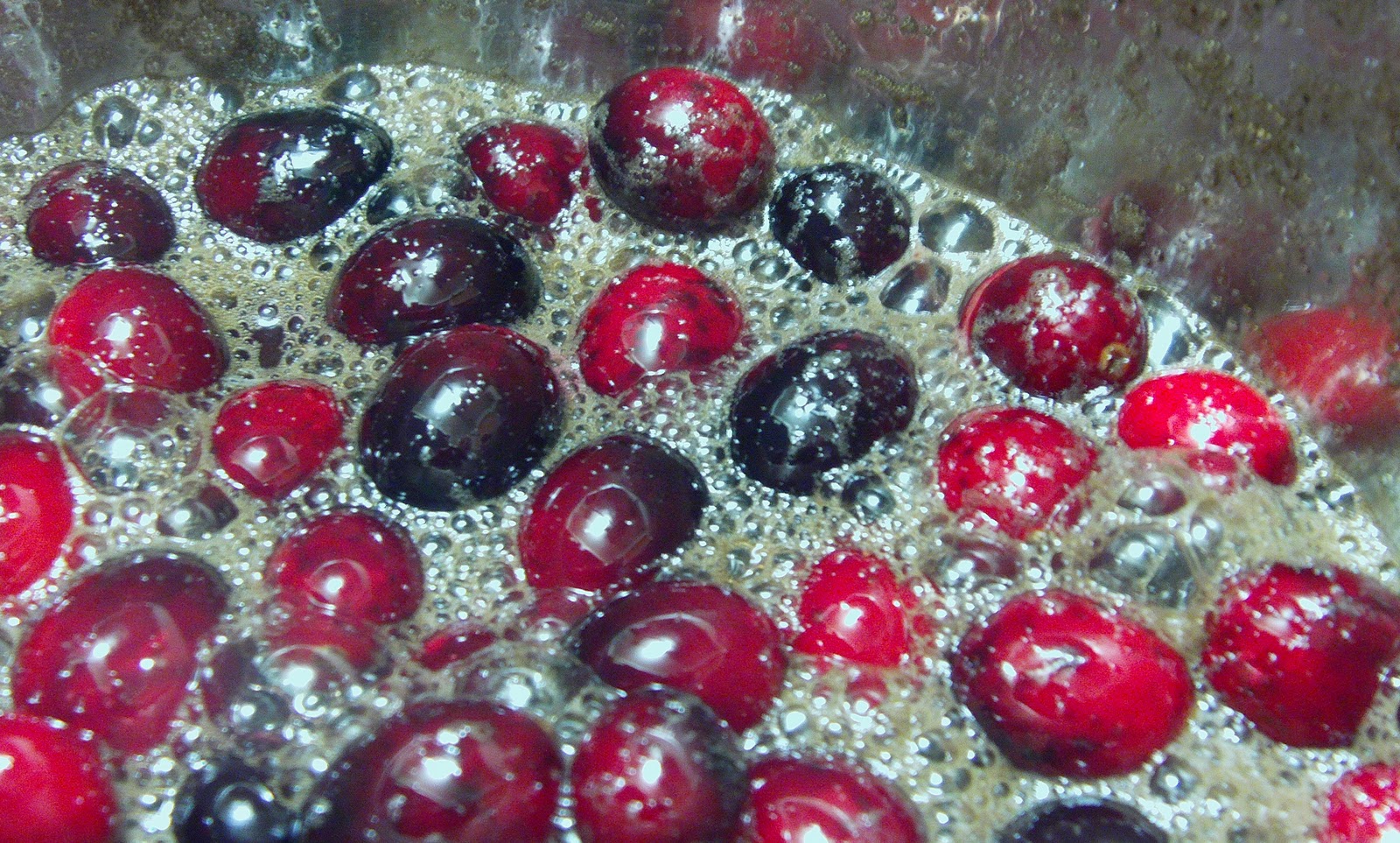 Don't they look delicious? Once the water boiled, she added the cranberries and let it simmer for 10 minutes.